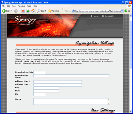 Then, send your invitees an e-mail address directing them to the Synergy Advantage site. Tell them they should register their organization and to use the primary e-mail address that you used in the invitation as the e-mail address of their main administrative user.